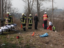 Sofort wurde ein Großalarm ausgelöst. Feuerwehr, Rotes Kreuz, Polizei und die Wasserrettung standen mehrer Stunden im Einsatz und konnten schließlich den Mann im absolut unwegsamen Gelände auffinden. Dort wurde er von den Rettungssanitätern erstversorgt und anschließend mit der Bergetrage von den Feuerwehrmännern rund 500 Meter über steiles und unwegsames Gelände geborgen.
