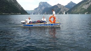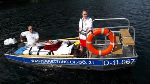 Die Wasserretter aus Ebensee bekamen eine Einschulung auf diesen Booten und begannen gleich mit einer Einsatzübung im Traundelta. Insgesamt waren 5 Mitarbeiter des Roten Kreuzes und 9 Wasserretter der Ortsstelle beteiligt. Alles in allem war es eine sehr erfolgreiche Übung, bei der nicht nur die Hochwasserboote für den Ernstfall erprobt wurden, sondern auch die Zusammenarbeit zwischen Wasserrettung und Rotem Kreuz.