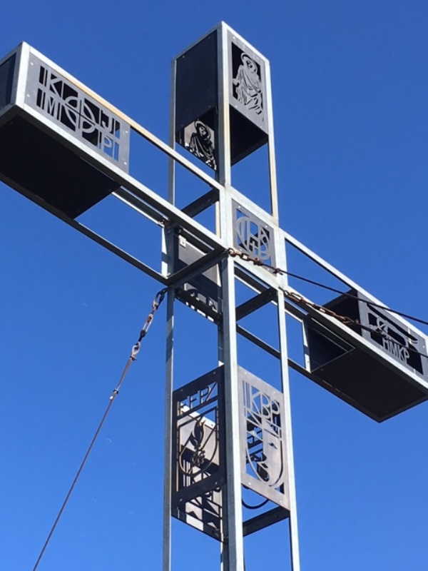 Zwei Tafeln auf dem Gipfelkreuz der Pfarre Maria Puchheim eingesetzt