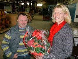 Bei einem Rundgang wurden die einzelnen Fertigungsschritte – von der unbehandelten Holzlatte bis hin zur fertigen Biertischgarnitur – gezeigt. In der Tagesheimstätte werden im Jahr rund 60.000 Verschlüsse, die jeweils aus vier Teilen bestehen, zusammengebaut.