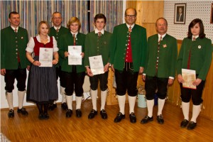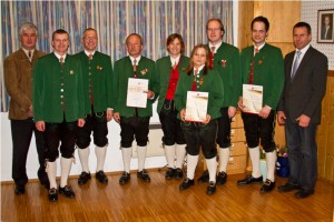 Hubertus Buchegger wurde mit der Verdienstmedaille in Silber für 25 Jahre Vereinstätigkeit geehrt. Stabführer Franz Gruber wurde für 26 Jahre Vorstandstätigkeit ausgezeichnet. Kapellmeister Arnold Maier wurde mit der höchsten Auszeichnung des OÖBV, dem Ehrenverdienstkreuz in Gold für 45 Jahre aktive Vereinstätigkeit geehrt.