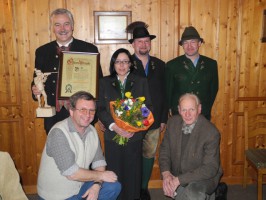 Wiedergewählt wurden der langjährige Kassier Dietmar Fettinger und der Schriftwart Burkhard Fettinger, der dieses Amt bereits seit über 50 Jahren inne hat! Als erste Amtstätigkeit konnte Brigitte Fettinger Hannes Scheutz für seine 29 jährige Tätigkeit als Schützen- und Oberschützenmeister die Urkunde zur Ernennung zum Ehren-Oberschützenmeister überreichen.