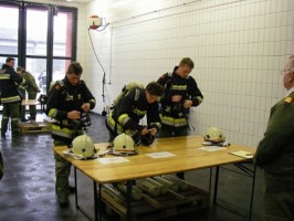Station 3 beinhaltete die Pflege und Wartung der Atemschutz-Geräte mit Flaschenwechsel und Hochdruckdichtprüfung sowie eine mündliche Prüfung über die Wartung, Pflege und detaillierte Fragen zum Atemschutzgerät stellten die Atemschutztrupps vor keine zu große Herausforderung. Zum Schluß mussten die Florianis zur theoretischen Prüfung, wo aus 90 Fragen 30 zum Test kamen.