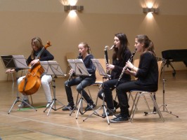 Amüsant mit geistreichem Esprit war der Auftritt des Quartetts „GangstInnen mit Carola Moser, Silke Reisenauer, Sara Steiner und Silla Selina (von der LMS Ebensee) aus den Klassen Christian Kapun, Thoams Rainer und Yvona Timoieanu im Festsaal der Rieder Messe. Das Trio Alteto mit Alina Goldnagl, Theresa Englbrecht und Thomas Puntigam aus den Klassen Mag. Christian Schleiss und Mag. Christine Müllner erreichte einen 2. Preis. Eva Steiner – Violine (Klasse Mag. Antoinette Holzinger) erreichte einen 2. Preis, Anna Grill (Klasse Ke Jian Shang) einen 5. Preis.