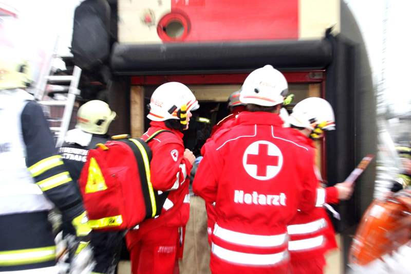 Das war die Übungsannahme der großen Bezirksübung von Rotem Kreuz, Feuerwehr, Polizei und ÖBB am vergangenen Samstag. Schwierig war die Bergung der Verletzten aus dem liegenden Waggon. Über defekte Türen und zum Teil über das Dach mussten die Menschen von der Feuerwehr gerettet werden. Wenige Minuten nach der Alarmierung war bereits das erste Rot-Kreuz-Team aus Attnang vor Ort und kümmerte sich um die Organisation der Menschenrettung.