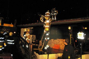 Fünf Personen die sich zuvor im Ferienhaus aufhielten konnten sich selbst ins Freie retten. Drei Atemschutztrupps nahmen sofort die Brandbekämpfung mit zwei Hochdruckrohren von aussen und innen auf. Das Blechdach wurde mit einer Spezialsäge geöffnet und mittels Wärmebildkamera konnte man den Brandherd neben dem Kaminaufgang schnell lokalisieren.