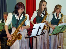 Mit „Joyful Saxophons“ von Wim Laseroms folgte ein Solostück für das wahrscheinlich hübscheste Saxophonregister von Oberösterreich. Ein lateinamerikanisch angehauchter Swing der das Publikum regelrecht mitriss. Als Solisten fungierten Lydia Panzl, Katharina Zopf und Beate Graf. In seiner Abschiedsrede bedankte sich Franz Schindlauer bei den Musikern und im Besonderen bei seinem Vorgänger Franz Zopf für die gute Zusammenarbeit. Er gehe mit Wehmut und werde die Kapelle vermissen.