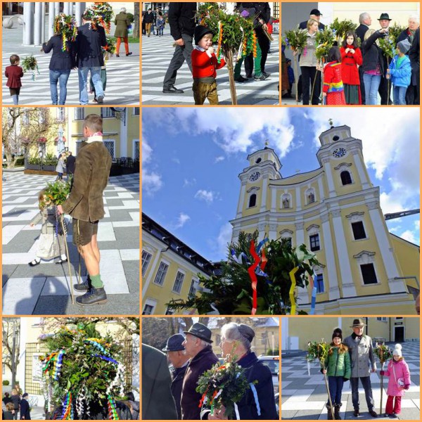 Wieder war der Palmsonntag ein schöner bunter Festtag in Mondsee. Hunderte Palmbuschen wurden von den Einheimischen in die Basilika getragen, um diese segnen zu lassen. Anschließend wurden die gesegnet und geweihten Palmbuschen vor der Kirche angeboten und verkauft. Viele davon waren bereits vorher schon von Nachbarn und Bekannten bestellt und daher rasch vergriffen.