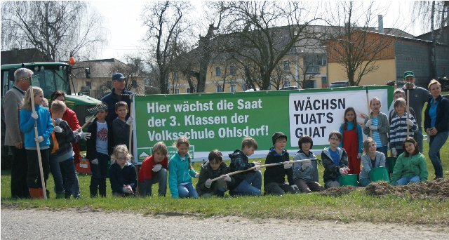 Unter der Obhut der Lehrerin Anita Fürtbauer und den Anweisungen einiger Ohlsdorfer Landwirte sind die Kinder von Beginn an dabei. Sie bereiten die Fläche für die Aussaat des Getreides vor und können selber pflanzen. So lernen die Kleinen nicht nur richtig mit den Werkzeugen umzugehen und zu hantieren, sondern erfahren auch, was bei der Saatbeetvorbereitung wichtig ist. Angefangen von der richtigen Bodentemperatur und Feuchte, ab der eine Bearbeitung möglich ist, bis hin zur richtigen Aussaat.