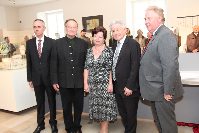 Unter den zahlreichen anwesenden Gästen befanden sich neben LH Dr. Josef Pühringer, Bürgermeister Heinz Köppl und Vzbgm. Gottfried Schrabacher sowie Museumsdirektorin Ingrid Spitzbart und Dr. Johannes Weidinger, Michael Kindl (Vorstand Laufen AG), Markus Haberfellner (Marketing Laufen AG), Robert Simek und Miroslav Hamatschek (beide Laufen Tschechien) Johanna Kräftner und Manfred Schönleitner (beide Willhelmsburger Geschirrmuseum sowie Vertreterinnen und Vertreter der Gmundner Gemeindevertretung.