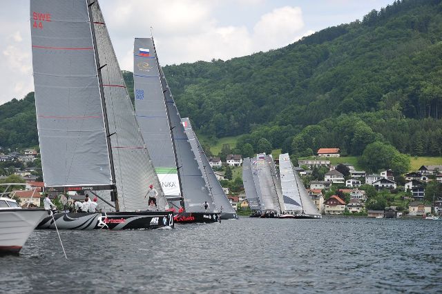 Der RC44 Austria Cup, dritte Station der Championship-Tour 2012, wurde heute mit dem City of Gmunden Grand Prix, einer Langstrecke von Gmunden nach Altmünster und wieder retour, eröffnet. Das britische Syndikate Peninsula Petroleum hatte dabei das beste Ende für sich und setzte sich bei auffrischenden Westwinden mit zwei Bootslängen Vorsprung gegenüber dem AEZ RC44 Sailing Team durch. Platz drei ging an Katusha (RUS), mit dem vierfachen AC-Champion Brad Butterworth am Ruder.