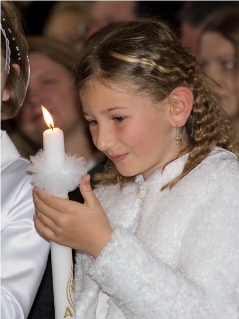Gleich zwei Schulklassen zusammen mit mehr als 35 Kindern ihre Erstkomminion. An diesem Tag empfangen die Kinder zum ersten Mal die heilige Kommunion. Die Eucharistie gehört zusammen mit der Taufe und der Firmung zu den Sakramenten, die in die katholische Kirche eingliedern.