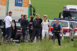 Nachdem Überfall flüchteten sie laut Augenzeugen in einem blauen Pkw. Im Zuge der Großfahndung konnte das verdächtige Fluchtauto – ein BMW-Cabrio mit Linzer Kennzeichen, auf das die Beschreibung passte, im Bereich des Sägewerkes Prehofer in Regau auf der Salzkammergut Bundesstraße B145 angehalten werden. In diesem Fahrzeug befand sich einer der Verdächtigen. Er konnte verhaftet werden und wird zur Zeit einvernommen.