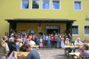 Dosenwerfen, Kinderschminken, Basteln und ein Zielwerfen waren die anderen Stationen. Kulinarisch wurden die zahlreichen Besucher von den Müttern der Schülerinnen und Schüler mit einem Büffet verwöhnt. Wir bedanken uns sehr herzlich bei allen, die uns geholfen haben, dass dieses Spielefest eine gelungene Veranstaltung wurde.
