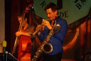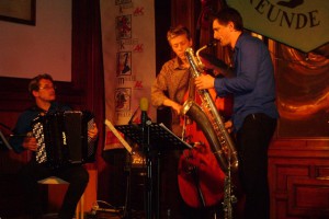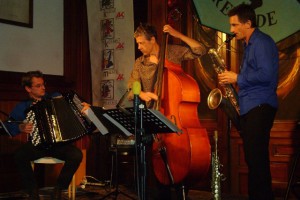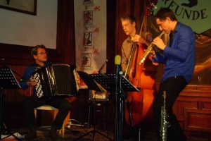 Er zeigte sich auch als Meister der lyrischen Stimmung in „Les couleurs de l’eau“ („Die Farben des Wassers“) und deutete dem Besitzer der PKS-Villa, dass das Stück zum Haus passe. Außerdem wechselte Séva meisterhaft zwischen Sopranino- und Baritonsaxophon, wie in „Folklores Imaginaires“ und betonte so den schrillen Klang des kleinen Instrumentes in den hohen Lagen. Der zweite Teil des Konzertes bot stilistische Abwechslung durch die Kompositionen von Didier Ithursarry und Jean-Philippe Viret. Beide Künstler begeisterten mit ihren Fähigkeiten am Akkordeon und Kontrabass.