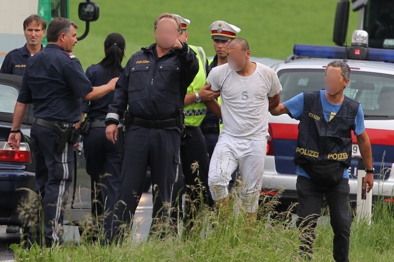 Zudem bedrohten sie einen in der Bank befindlichen Kunden. Im Anschluss flüchteten die drei Täter aus der Bank und stiegen in einen in unmittelbarer Nähe wartendes BMW-Cabrio, der von einem Komplizen gelenkt wurde. Bei der Zeugenbefragung konnte das Kennzeichen des Fluchtfahrzeuges ermittelt und der Fahrzeuglenker konnte an der B145 vor der Autobahnauffahrt Regau von einer Streife der Polizeiinspektion Attnang Puchheim gestellt werden. Mit Unterstützung weiterer Einsatzkräfte des Bezirkes Vöcklabruck und Gmunden konnte das vermutliche Fluchtfahrzeug angehalten und der Lenker, ein 18-jähriger irakischer Staatsbürger aus dem Bezirk Linz-Land, festgenommen und zur Polizeiinspektion Vöcklabruck verbracht werden (salzi berichtete bereits mit einem ausführlichen Bildband).