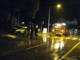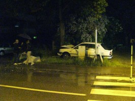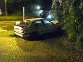 Vöcklabruck: PKW überfährt Leuchtreklame und prallt gegen Baum