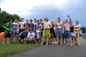 Aufgrund der Sturmwarnung wurde das Rennen in nur einem Durchgang ausgetragen, bei dem sowohl die Zeit als auch die Kreativität des Bootes und der „Besatzung“ gewertet wurden. Herausragend waren hier der Trommler, der die Ruderer des Bootes aus Roitham zur Höchstleistungen anspornte sowie die Vampirvorstellung der Gruppe aus Frankenburg! Als die Boote nach dem Rennen wieder aus dem Wasser gehoben und auf den Anhängern verstaut waren, öffneten sich die Schleusen und es stürmte und schüttete wie aus Kübeln.