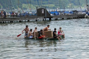 Am Sonntag, 8. Juli trafen sich Jugendliche aus der Region Salzkammergut mit ihren selbstgebauten Booten zur Wettfahrt am Traunsee in Altmünster auf der Esplanade.