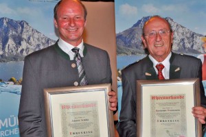 Das langjährige kommunale Engagement von Hans Schögl (ÖVP) und Reinhardt Weindlmayr (SPÖ) wurde nun auch offiziell bedankt: Beide Bürgermeister-Stellvertreter bekamen von Gemeindereferent LR Max Hiegelsberger und Bürgermeister Hannes Schobesberger den ihnen vom Gemeinderat einstimmig zuerkannten Ehrenring der Kommune überreicht – nach der Ehrenbürgerwürde die zweithöchste zu vergebende Auszeichnung. Der Ortschef würdigte in seiner eingehenden Laudatio deren öffentlichen Einsatz neben ihren Berufsaufgaben und stellte ihre Weitsicht abseits aller ideologischen Grenzen in den Vordergrund.
