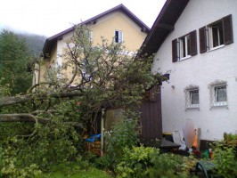 Glimpflich hat es da das Salzkammergut erwischt. Lediglich ein heftiger Windstoß dürfte in der Nacht auf Samstag in Gmunden einen Baum zu Fall gebracht haben. Der Baum fiel auf eine Garage und beschädigte diese erheblich. Die Feuerwehr Gmunden konnte nach Absicherungsarbeiten am Samstagvormittag den Baum sorgfälig in kleine Einzelteile schneiden. Verletzt wurde niemand.