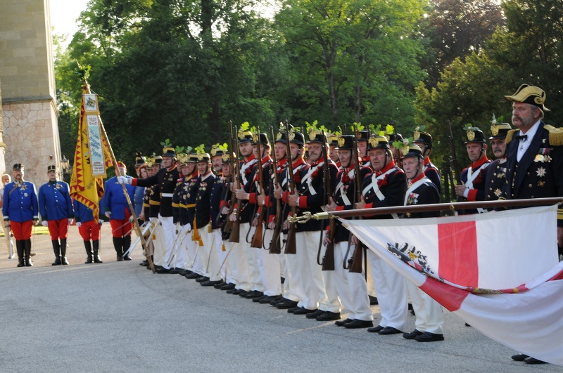 Zu einem freundschaftlichen Zusammentreffen von mehr als 20 Traditionsverbänden aus dem Salzburg-Oberösterreichischen Raum kam es kürzlich auf dem Gelände von Schloss Cumberland. Das Gmundner Traditionskorps feierte seinen Regimentstag zum Gedenken an die siegreiche Schlacht bei Aspern und Wagram gegen die Franzosen.