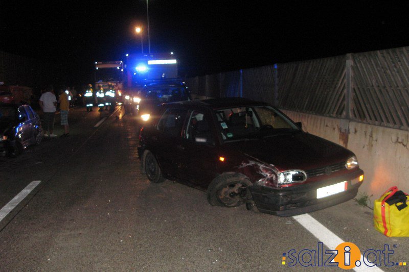 Daraufhin wurde das Feuerwehrauto vermutlich gegen die rechte Leitschiene geschleudert und dürfte in Folge zwei nachkommenden PKWs, gelenkt von einem 44-jährigen Rumänen und einem 64-jährigen Rumänen, touchiert haben.