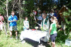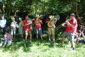 Bei herrlichem Wetter zelebrierte KonsR Alois Kainberger, der erst kürzlich sein 50jähriges Priesterjubiläum feierte, vor Jung und Alt die heilige Messe beim Marterl am Fuße des Katzenstein. Musikalisch umrahmt wurde die Veranstaltung hervorragend von einer Bläsergruppe des Musikvereins Gschwandt. Ein Gottesdienst vor so einer beeindruckenden Naturkulisse gibt Kraft für die nächsten Wanderungen und für weitere Lebensaufgaben. Der Tenor der Besucher: Herrliches Wetter, traumhafte Landschaft und nette Leute – was will man mehr?
