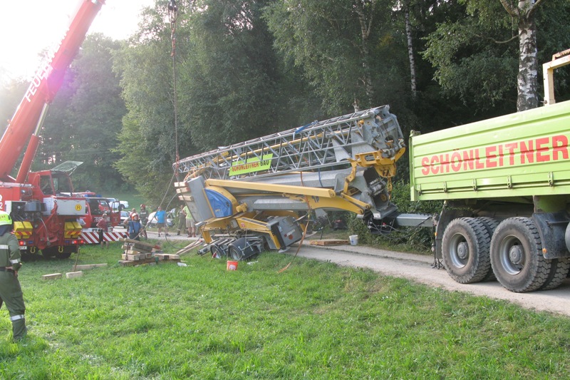 Mit Hilfe des Bergekrans konnte der LKW unbeschädigt geborgen werden. Um die Bergung durchführen zu können, wurde ein Portalkran von einer Baustelle des Unternehmens abgezogen und nach Wildenhag überstellt. Bei der Zufahrt zu dieser Baustelle stürzte der Portalkran jedoch um und musste ebenfalls von den bereits im Einsatz befindlichen Feuerwehren St. Georgen und Vöcklabruck geborgen werden.