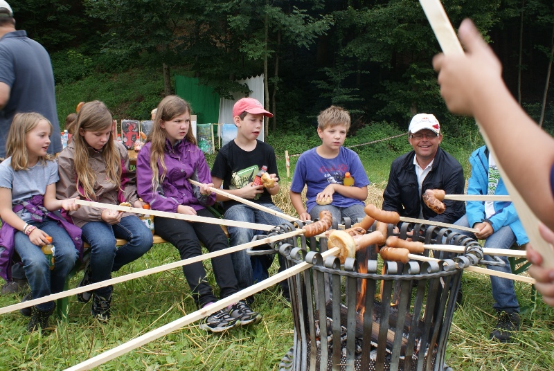 Waren die „Ziele“ gefunden wurde so gut es ging, versucht diese auch ins „Schwarze“ zu treffen. Auch Vzbgm. Karl Haas machte sich mit den kleinen „Profis“ auf und es war eine riesen Hetz in der Natur sein Können mit Pfeil und Bogen zu testen. Zur Stärkung gab es Knacker selbst am Feuer gebraten und ein Getränk. Abschließend wurde auf die Zielscheibe geschossen und das Erlernte gezeigt. Ein spannender Vormittag für die Kids aber auch für uns Veranstalter.