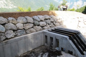 „Neben den Maßnahmen für den Lawinenschutz soll der Auffangdamm auch als Rückhalt für im Hochwasserereignis mittransportierter Gehölzer und des Geschiebes sowie gegen Steinschlag dienen“ erklärt Dipl.-Ing. Michael Schiffer, zuständiger Gebietsbauleiter der Wildbach- und Lawinenverbauung. Das Rückhaltevolumen beträgt insgesamt 4.800 m3!