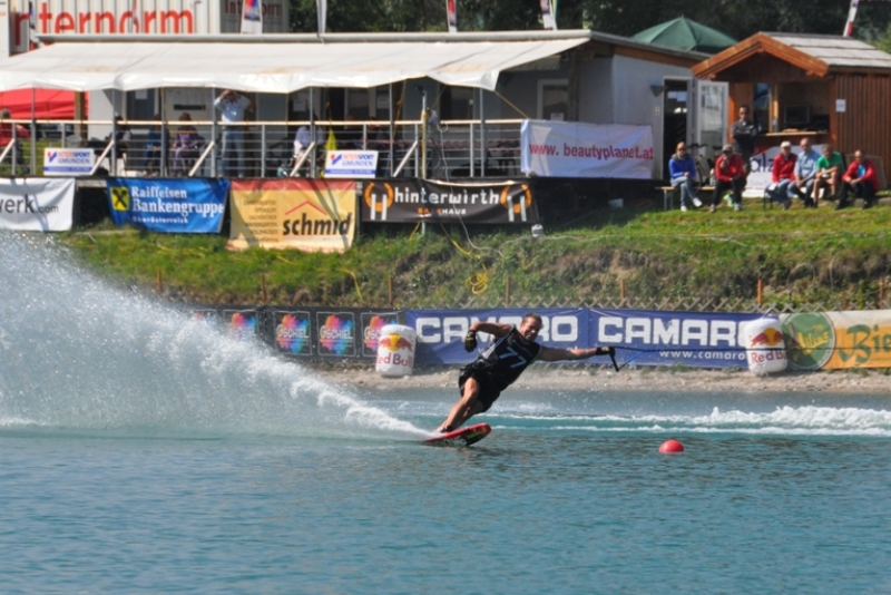 Altmeister „Franzinator“, Franz Oberleitner, rührte am Wasser um wie zu alten Zeiten. An seinem Heimatsee in Fischlham wurden die Senioren Europameisterschaften ausgetragen. Franz Oberleitner bereitete sich gut vor und kam auch in top Form zum Wettkampf. Beim Springen, seiner Paradedisziplin zeigte er den Mitkonkurrenten wer die Berechtigung zum Flugschein hat. Er haute einige ordentliche Flüge raus, mit über 49 m gewann er souverän den Wettkampf. Beim Tricken, was nicht immer seine Paradedisziplin war, griff er sich auch die Goldene.