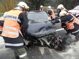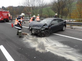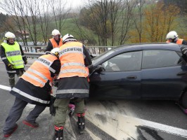 Nach Eintreffen am Einsatzort wurde ein verunfallter PKW am ersten Fahrstreifen vorgefunden, die Lenkerin war bereits aus dem Fahrzeug geborgen.