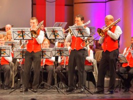 Mit dem Musikstück „Happy Trombones“ kam der große Auftritt der Solisten Robert KIENESBERGER, Clemens KIERLINGER und Christian MAYERHOFER mit ihren Posaunen. Sie ernteten mit ihrer Darbietung tosenden Applaus.
