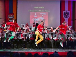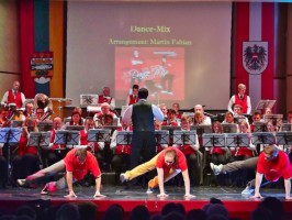 Ein weiterer wohl einzigartiger Höhepunkt des Abends folgte mit einem „Dance-Mix“, arrangiert von Kapellmeister Martin FABIAN und begleitet in tänzerischer Form von der Breakdance-Gruppe „Move too hot Austria – Spinning Souls Crew“ und dies war mehr als sehenswert. Die drei Jugendlichen vollführten wahrlich akrobatische Tanzverrenkungen, bei der sich so mancher Zuschauer ein lautes BRAVO nicht mehr verhalten konnte. Nach dieser Darbietung sagte die Leiterin der Gruppe Katrin KIRCHGATTERER: „das war urcool und einfach Weltklasse, wir machen das jederzeit wieder!“ Und da gab ihr der nicht aufhörende Applaus auch vollkommen recht.