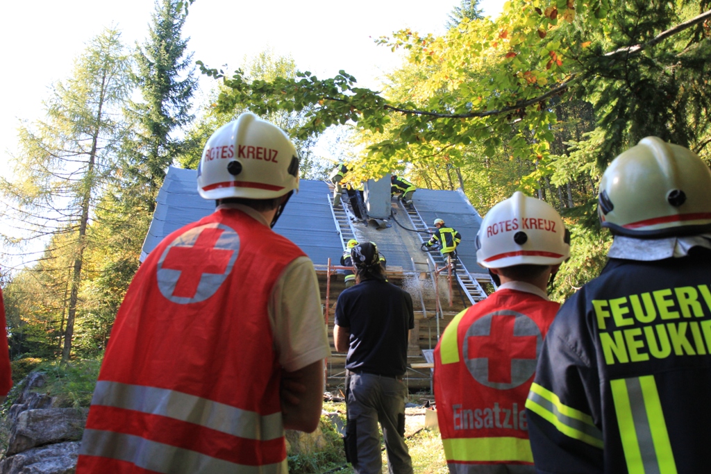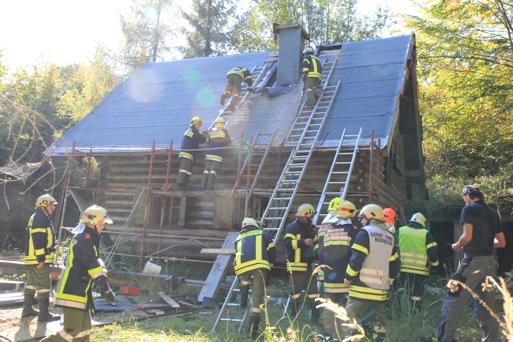 Glück im Unglück hatte am Samstagnachmittag ein Almhüttenbesitzer in Neukirchen bei Altmünster. Bei Renovierungsarbeiten am Dachstuhl brach aus noch unbekannter Ursache im Bereich eines Kamins ein Brand aus. Arbeiter alarmierten umgehend die Feuerwehr.