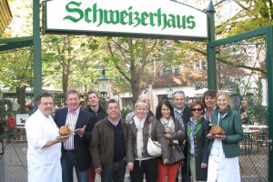 Erste Station war das Schweizerhaus im Prater, wo Hausherrin Lydia Kolarik den interessierten Kollegen den unvergleichlichen Biergarten, die riesige Schankanlage und den Keller zeigte. Danach genoss man zur legendären Stelze natürlich ein Original Budweiser Budvar. Dann ging’s nach Stammersdorf zu Fritz Wieninger, dem Wiener Paradewinzer.