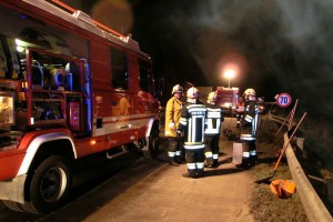 Dieser floß entlang des Banketts Richtung Kläranlage, konnte aber vor Eintritt in ein Klärbecken gerade noch gestoppt werden. Es konnten rund 200 Liter des ausgelaufenen Diesels mit Ölbindemittel gebunden werden. Nach dem Säubern der Fahrbahn konnte die B1 gegen 5 Uhr wieder freigegeben werden. Um ca. 7 Uhr traf der Sachverständige der Landesregierung ein und ordnete das Abgraben des Banketts sowie der Strassenböschung an.