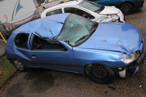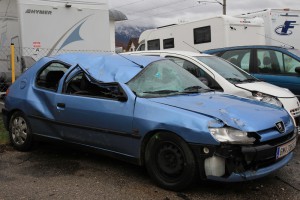 In fahrendes Auto gelaufen