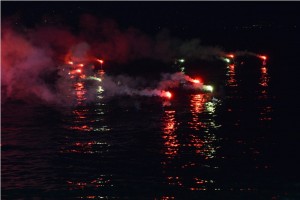 Seit bereits 1964 hat das Christbaumtauchen im Traunsee am Gmundner Rathausplatz Tradition. Am Samstagabend war es schließlich wieder so weit und so wurden rote und grüne Lichter am Traunsee gesichtet. Als sich gegen 18:15 Uhr die bunten Lichter der Gmunder Uferzone beim Rathausplatz näherten, erkennte man die Taucher der Fa. Hatschek und der Gmundner Wasserrettung, die mit ihren Fackeln zum dicht mit Besuchern gefüllten Ufer schwammen.