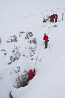 Weiters wurde noch der Umgang mit dem neuen Dyneema-Seilen unter Winterbedingungen mit Winterverankerungen, wie Toter Mann (=eingegrabene Skier als Verankerung) trainiert. Die neuen Seile bieten eine enorme Gewichtsersparnis, wobei aber nur ein zertifiziertes System zum Bergen verwendet werden kann, da Knoten, wie in der herkömlichen Bergetechnik an diesen Seilen nicht mehr halten würden.