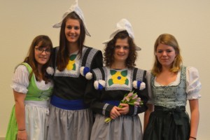 Die Österreicher waren gleichzeitig mit englischen Austauschschülern aus London in Tilburg, und so erfolgten die abschließenden Präsentationen über die einzelnen Länder in englischer Sprache. Beim abschließenden Fotoshooting kam es zu einem interkulturellen Trachtenaustausch, die Österreicher posierten in niederländischer Tracht, die Holländer schlüpften in Dirndl und Lederhose.