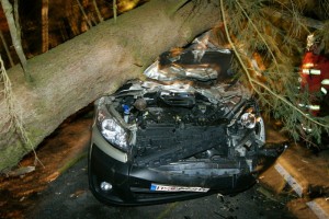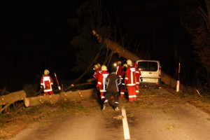 Glück im Unglück hatte ein slowakischer Autofahrer am Freitagabend in Vorchdorf, als dieser gegen 22 Uhr auf der Verbindungsstraße zwischen Vorchdorf und Lindach unterwegs war. Vermutlich aufgrund der starken Windböen fiel ein Baum genau in jenem Moment um, als der Slowake mit seinem Auto daran vorbei fuhr. Der Fahrer bemerkte das Hindernis zu spät und prallte frontal gegen den umstürzenden Baum.