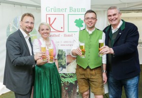 Neben dem ganz besonderen Familienzusammenhalt gibt es noch eine Besonderheit in der Familie Kiener – seit Urgroßvaters Zeiten heißen die Männer immer Michael, was beim Jubiläumsfest von Moderatorin Jutta Mocuba launig hervorgehoben wurde. Zwischen Zipfer-Bier und dem Gasthof “Grüner Baum” besteht seit Beginn eine enge Verbindung und so rechneten Zipfer Braumeister Günther Seeleitner und Verkaufsmanager Christian Payrhuber vor, dass in den vergangenen 120 Jahren rund 38 Millionen Halbe Zipfer-Bier von den Gästen getrunken wurden.
