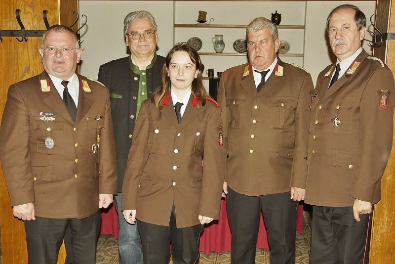 Alle sonstigen Aktivitäten beliefen sich auf über 12.000 Arbeitsstunden. Der Mitgliederstand beträgt insgesamt 83 Mann. Auch wurde eine große Anzahl an Lehrgängen in der Landesfeuerwehrschule besucht, sowie einige Leistungsabzeichen absolviert. Tina Hüller, das jüngste Mitglied der „Aktiven“ wurde angelobt und gleichzeitig zur Feuerwehrfrau befördert. Im Zuge der Jahreshauptversammlung kam es auch zur Neuwahl des Kommandos.