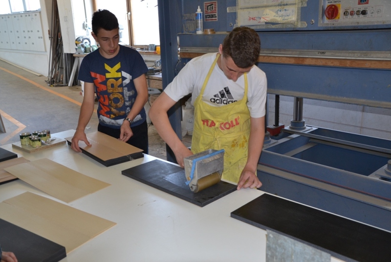 Die Schüler erhielten einen wertvollen Einblick in die Arbeitsweise einer modernen Tischlerei und konnten die einzelnen Arbeitsschritte vom Rohmaterial bis zum fertigen Produkt mit eigenem „Handanlegen“ direkt verfolgen und selbst bestimmen.