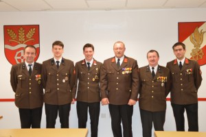 Aus den Reihen der Jugend wurden Bichler Max und Holzleithner Stefan vom Bürgermeister angelobt und zum FM befördert Vom „neuen alten“ Kommandanten wurden folgende Funktionen bestimmt: Würflinger Karl-Heinz als neuer Zugskommandant Copp Daniel wurde als neuer Jugendbetreuer Bergthaller Christian als neuer Gruppenkommandant Pointl Jakob als neuen Lotsenkommandant Kienesbeger Gottfried wurde zum OBM, Leitner Florian zum LM, Pointl Hans-Georg zum HLM, Urthaler Thomas zum BM, Würflinger Christian zum HFM und Zauner Stefan zum OLM Ein besonderes Highlight war die anschließende Ehrung von verdienten Kameraden mit Bezirksauszeichnungen aller 3 Stufen.