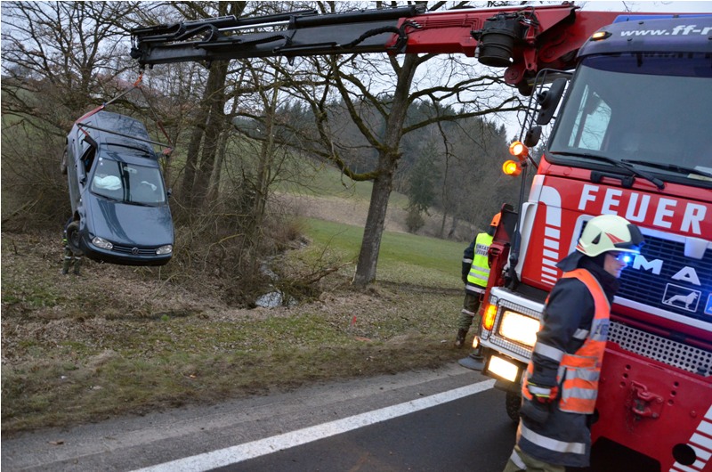 Zwei Fahrzeuginsassen blieben unverletzt, einer wurde unbestimmten Grades verletzt und nach der Erstversorgung durch das Rote Kreuz in das LKH Vöcklabruck gebracht. Die Bergung des Fahrzeuges übernahmen die Feuerwehren Regau und Rutzenmoos.