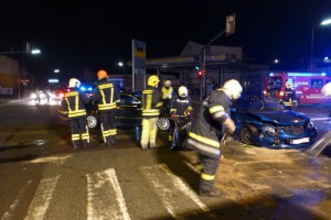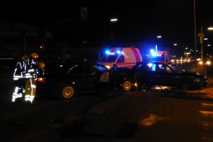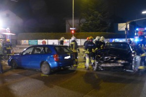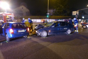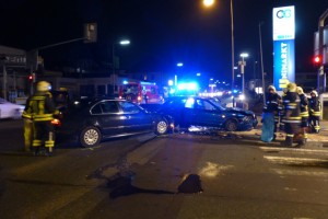 Beim Zusammenstoß zweier Fahrzeuge auf der Wiener Bundesstraße in Vöcklabruck wurden am Freitagabend zwei Personen unbestimmten Grades verletzt. Ein 19-jähriger Schüler aus Lenzing fuhr gegen 20:35 Uhr mit seinem Auto auf der B 1 Richtung Attnang. Bei der sogenannten „ENI-Kreuzung“ übersah er beim Linksabbiegen den entgegenkommenden Wagen eines 38-jährigen mazedonischen Staatsbürgers aus Puchheim. „Die zwei Fahrzeuge waren genau auf der Kreuzung zusammengestoßen. Die erste Meldung, dass eine Person im Fahrzeug eingeklemmt ist, bestätigte sich glücklicherweise vor Ort nicht.“, so Mag. Thomas Tränker, Zugskommandant der FF Vöcklabruck.