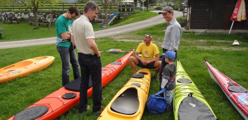 Am Dienstag konnten Seekajaks, Sit-on-Top Kajaks, Wildwasserboote und Paddel verschiedenster Hersteller getestet werden. Dieses Angebot nahmen zahlreiche Gäste (auch aus Deutschland) an und paddelten kleine Runden am See um den Sitzkomfort, die Kippstabilität, … der Boote zu fühlen. Ins Wasser gefallen ist dabei niemand – bei 10 Grad Wassertemperatur wäre dies auch nicht zu empfehlen gewesen.